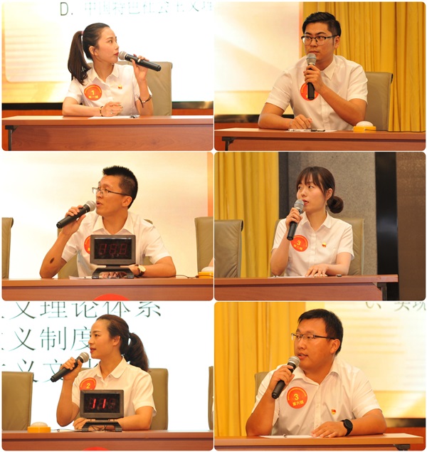 本次知識競賽共有來自基層黨支部的7支代表隊參賽,參賽選手們搶抓時間,快速思考,激烈搶答,上演了一場精彩紛呈的腦力與知識的較量。在場觀眾也參與了互動知識競答,對競賽題目進行思考、討論,現(xiàn)場高潮迭起,掌聲不斷。