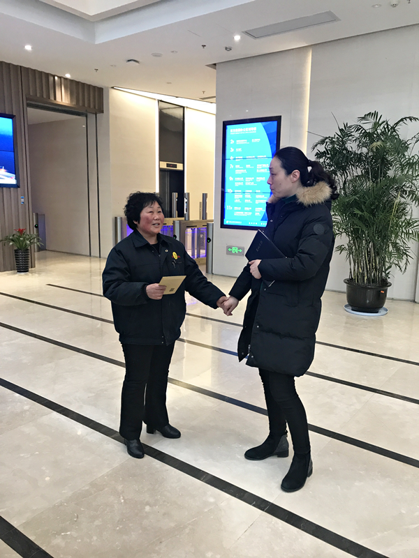 丁嵐詳細(xì)詢問了王秀紅的工作和生活情況。王秀紅在東方物業(yè)從事保潔工作,七年多來,她勤勤懇懇、領(lǐng)悟性高,不怕苦、不怕累,具有很強(qiáng)的集團(tuán)榮譽(yù)感。在技能比賽前,虛心請教保潔主管,反復(fù)訓(xùn)練,在比賽中與團(tuán)隊合作,多次取得好成績。在家庭生活中,她和丈夫承擔(dān)著贍養(yǎng)三位老人、帶著一個年幼孩子的責(zé)任。兩年前,她的婆婆檢查出肺癌,患病期間由她精心照料,婆婆已于2017年去世,作為兒媳婦的她盡了最大的孝心?,F(xiàn)在,家里的三位老人最大的已89歲,其中她的母親是聾啞人,生活自理都很困難,為了提高他們的生活質(zhì)量,王秀紅夫妻倆共同擬定了生活規(guī)劃,精心照料老人起居,用心陪伴老人。王秀紅家里還有兩個女兒,大女兒已出嫁,小女兒在上小學(xué),她也經(jīng)常教育孩子學(xué)會尊重老人。丁嵐對她勤懇工作、愛崗敬業(yè)、無私奉獻(xiàn)的精神表示贊賞和敬佩,希望她再接再厲,更好地為弘揚(yáng)新時代文明新風(fēng)、推動文明進(jìn)步作出新的貢獻(xiàn)。