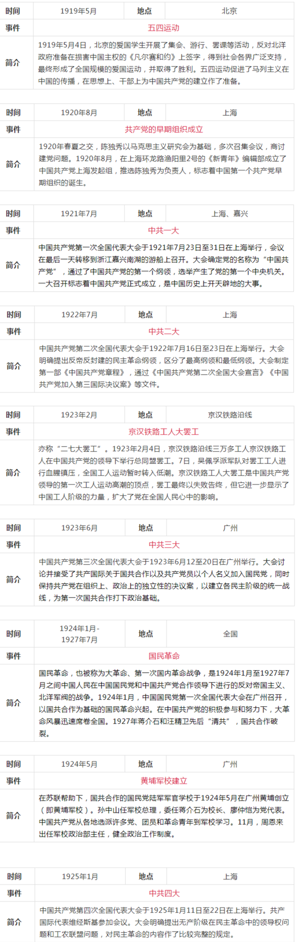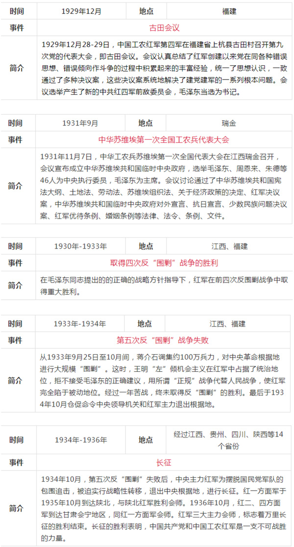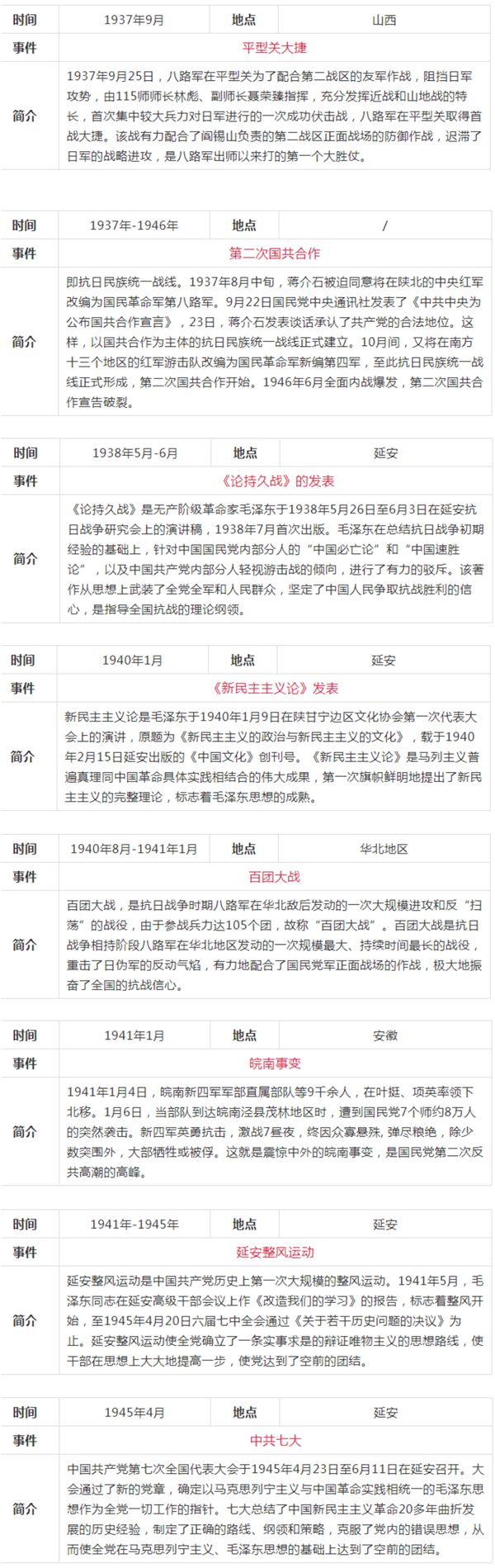 中共黨史大事記簡表(新民主主義革命時(shí)期