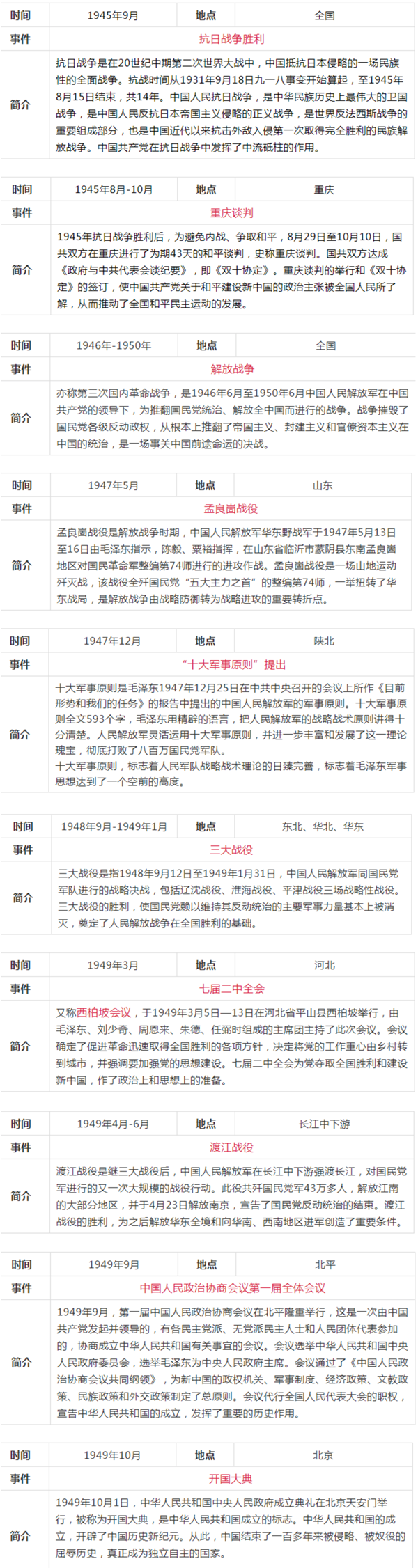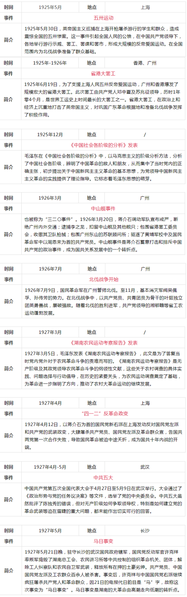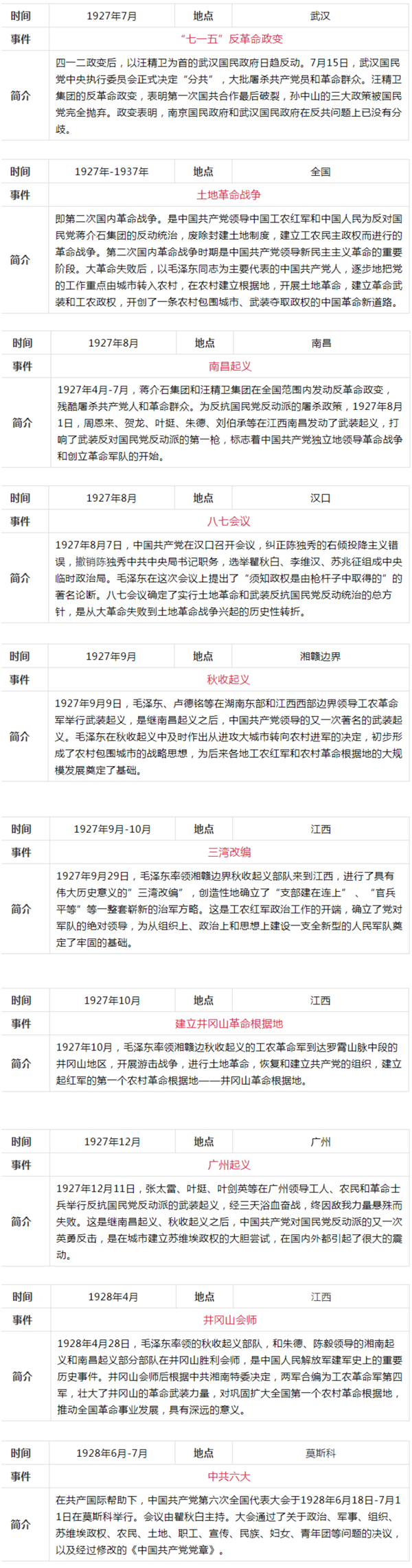 中共黨史大事記簡表(新民主主義革命時(shí)期