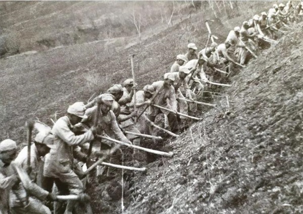 大生產(chǎn)運(yùn)動(dòng)中最具代表性的成果是開(kāi)發(fā)南泥灣。1940年,朱德總司令根據(jù)中共中央關(guān)于開(kāi)展大生產(chǎn)運(yùn)動(dòng)的指示精神,親赴有著陜甘寧邊區(qū)“南大門(mén)”之稱的南泥灣調(diào)查,決定在此屯開(kāi)墾自給。隨后,八路軍一二零師三五九旅在王震的率領(lǐng)下,開(kāi)進(jìn)南泥灣,披荊斬棘,開(kāi)荒種地。生產(chǎn)過(guò)程中,旅黨委作出決定“不讓一個(gè)人站在生產(chǎn)圈外”。從王震到勤雜人員和隨軍家屬,人人參加生產(chǎn)勞動(dòng),承擔(dān)和戰(zhàn)士一樣的生產(chǎn)自給任務(wù)。一位到三五九旅采訪的記者寫(xiě)道:“王震的雙手也像他的部下一樣,由于勞動(dòng)而生滿了老繭。”戰(zhàn)士們更是你追我趕,越干勁越大,越干辦法越多。在“一把鋤頭一把槍,生產(chǎn)自給保衛(wèi)黨中央”的口號(hào)激勵(lì)下,經(jīng)過(guò)兩年的辛勤勞動(dòng),廣大官兵用自己的雙手和汗水,將荒無(wú)人煙的南泥灣開(kāi)發(fā)成了“平川稻谷香,肥鴨遍池塘,到處是莊稼,遍地是牛羊”的“塞北好江南”。