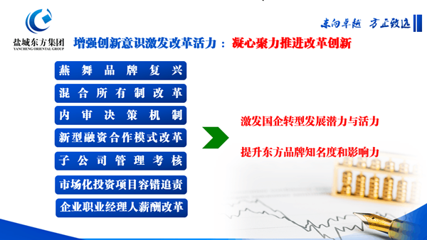 作為東方集團的“領頭羊”,張振國始終把改革創(chuàng)新作為解放思想的重要推手和動力源泉,開創(chuàng)了國有經(jīng)濟充滿活力、國有資本功能放大、國有資產(chǎn)保值增值的生動局面。對此,張振國如數(shù)家珍: