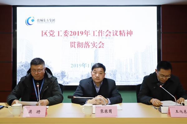 集團黨委副書記、總經(jīng)理王旭東傳達區(qū)黨工委書記戴榮江講話精神。2018年以來,在市委、市政府的堅強領(lǐng)導(dǎo)下,全區(qū)上下堅決認真落實“三市”戰(zhàn)略,積極踐行“兩海兩綠”路徑,以中韓(鹽城)產(chǎn)業(yè)園建設(shè)為抓手,堅持項目立區(qū),統(tǒng)籌做好穩(wěn)增長、促改革、調(diào)結(jié)構(gòu)、惠民生、防風(fēng)險各項工作,高質(zhì)量發(fā)展實現(xiàn)良好開局。從中韓(鹽城)產(chǎn)業(yè)園建設(shè)加快推進、雙招雙引質(zhì)效提升、重點改革穩(wěn)步推進、民生福祉持續(xù)改善、黨的建設(shè)不斷加強等方面對2018年工作進行了回顧。研究部署2019年工作,動員全區(qū)上下圍繞“三市”戰(zhàn)略,踐行“兩海兩綠”路徑,聚焦中韓(鹽城)產(chǎn)業(yè)園建設(shè),牢固樹立項目立區(qū)理念,堅定創(chuàng)新引領(lǐng)導(dǎo)向,突出五項重點,加快建設(shè)六大產(chǎn)業(yè)載體,落實落地七項具體任務(wù),為高水平建成小康社會完美收官打下決定性基礎(chǔ),推動高質(zhì)量發(fā)展走在蘇北蘇中前列。