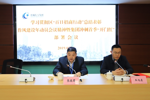 3月1日,鹽城東方集團(tuán)召開學(xué)習(xí)貫徹區(qū)“百日招商行動(dòng)”總結(jié)表彰、作風(fēng)建設(shè)年動(dòng)員大會(huì)精神暨集團(tuán)沖刺首季“開門紅”部署會(huì)議。集團(tuán)黨委書記、董事長張振國傳達(dá)學(xué)習(xí)區(qū)“百日招商行動(dòng)”總結(jié)表彰會(huì)議精神,全面部署2019年重點(diǎn)工作,號召和動(dòng)員集團(tuán)上下大干當(dāng)前、力奪首季開門紅,推動(dòng)集團(tuán)高質(zhì)量發(fā)展走在蘇北蘇中同類國企前列。集團(tuán)副黨委書記、副董事長、總經(jīng)理王旭東主持會(huì)議。集團(tuán)領(lǐng)導(dǎo)班子全體成員,各部門、子公司中層以上人員參會(huì)。