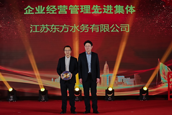 鹽城東方集團黨委委員、副總經(jīng)理王成林為“企業(yè)經(jīng)營管理先進集體”代表頒獎。