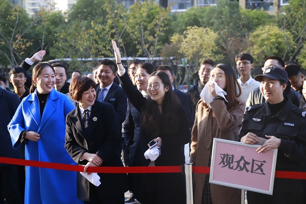 15:20分,隨著一聲清脆的哨聲響起,只見集團微型消防站的2位消防隊員,迅速穿好消防滅火服后,隨即將兩條消防水帶進行對接,一支水柱迅速騰空而起,專業(yè)的操作、規(guī)范的動作,將日常訓(xùn)練的消防技能水平發(fā)揮得淋漓盡致,嫻熟的消防技能展示贏得現(xiàn)場觀眾的陣陣喝彩。