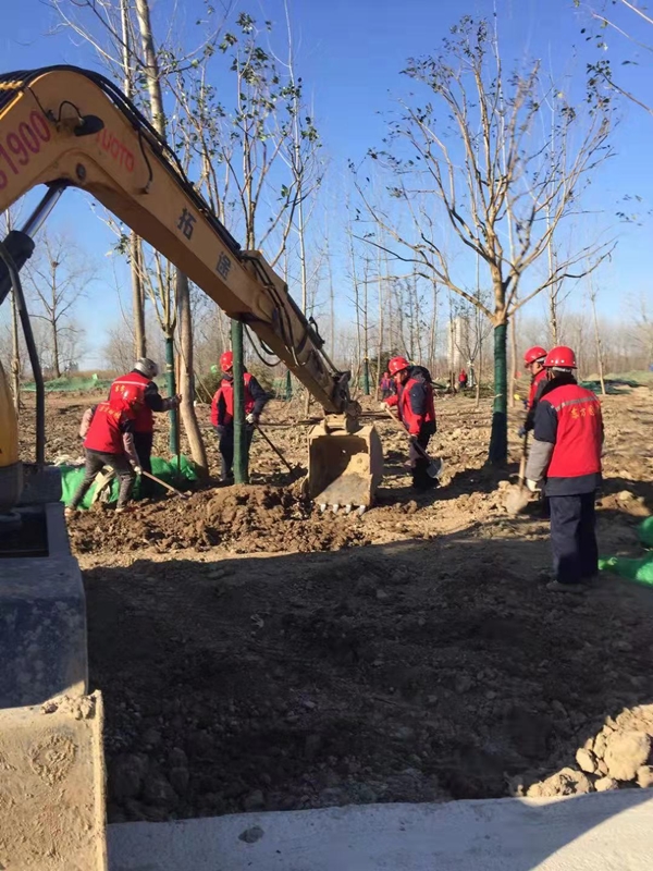東方園林人為了讓節(jié)日里的城市更美麗,在堅(jiān)守奮戰(zhàn)中度過春節(jié)。170名園林人拼搏在新四軍文化林、東方公園、友誼公園、河濱公園等重點(diǎn)綠地項(xiàng)目。新四軍軍文化林工程項(xiàng)目上,工人們抓緊晴好天氣實(shí)施綠地地形整理、河道開挖、綠化栽植等,計(jì)劃3月25日前栽植各類樹木4700棵,確保工程盡早完工。為了營造平安祥和的節(jié)日氛圍,園林人每日里對(duì)46.7萬平方米的養(yǎng)護(hù)轄區(qū)進(jìn)行巡視、養(yǎng)護(hù)、維護(hù),及時(shí)更換公園內(nèi)所有電箱中的安全繼電器和保險(xiǎn)絲,防止發(fā)生安全隱患;每日定時(shí)巡查公園8次,提醒游客佩帶口罩和遛狗牽繩;每天對(duì)公園內(nèi)的座椅、健身器材、垃圾桶、衛(wèi)生間等設(shè)施定時(shí)消毒2次,保潔4次。