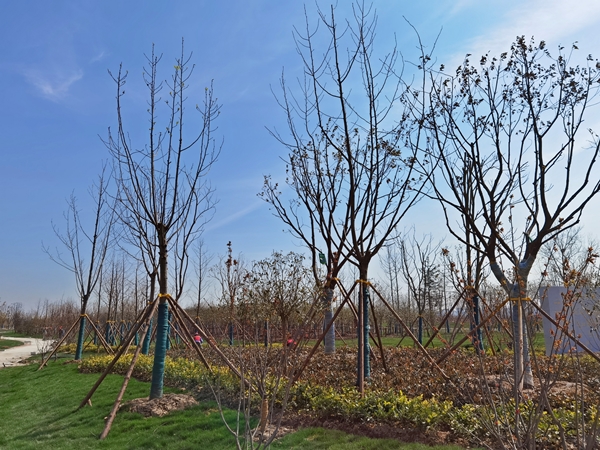 為全面落實上級交辦的綠化建設(shè)任務(wù),東方園林公司提升站位,組建由集團副總經(jīng)理任組長的新四軍文化林指揮部,發(fā)揚鐵軍精神,以強烈的緊迫感和責任感投入項目中,嚴把質(zhì)量、搶抓工期,著力打造綠化精品工程。2020年11月底,東方園林進駐新四軍文化林項目,匠心“編織”城市綠網(wǎng),培育水景共融的文化林。