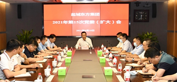 8月18日下午,鹽城東方集團(tuán)在集團(tuán)七樓1號(hào)會(huì)議室召開2021年第15次黨委(擴(kuò)大)會(huì)議,傳達(dá)學(xué)習(xí)市、區(qū)會(huì)議精神,研究討論集團(tuán)下一步發(fā)展規(guī)劃和推進(jìn)舉措。集團(tuán)黨委書記、董事長(zhǎng)、總經(jīng)理王旭東主持會(huì)議并講話。集團(tuán)黨委領(lǐng)導(dǎo)班子成員出席會(huì)議,集團(tuán)總會(huì)計(jì)師列席會(huì)議,中層以上人員、子公司經(jīng)營(yíng)層參加會(huì)議。