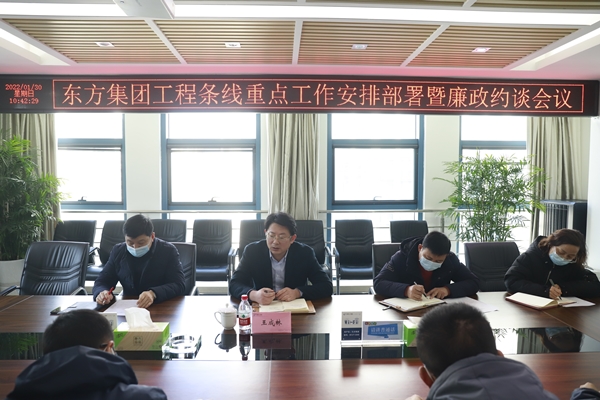 1月30日,鹽城東方集團(tuán)工程條線在集團(tuán)1115會(huì)議室組織召開重點(diǎn)工作安排部署暨廉政約談會(huì)議。集團(tuán)黨委委員、副總經(jīng)理王成林主持會(huì)議。東方建設(shè)、東方市政及地產(chǎn)公司各經(jīng)營層、集團(tuán)工程部部門負(fù)責(zé)人及各項(xiàng)目建設(shè)負(fù)責(zé)同志參加會(huì)議。