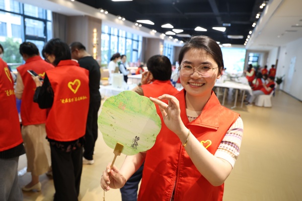端午節(jié)贈(zèng)扇也是傳統(tǒng)習(xí)俗之一,寓意祈福納祥、一扇解千愁?;顒?dòng)現(xiàn)場(chǎng),大家還共同制作漆扇,以漆為筆,以水作畫(huà),在親身實(shí)踐中感受非物質(zhì)文化遺產(chǎn)漆扇藝術(shù)之美。