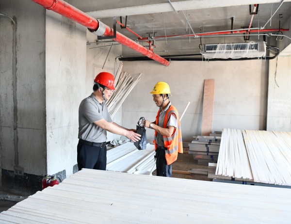王成林向各項目現(xiàn)場一線工人逐一發(fā)放了毛巾、香皂、花露水、藿香正氣水等防暑降溫物資,實地查看了項目進展情況,感謝建設者們在高溫下為項目推進付出的努力,并詳細詢問了一線職工工作生活環(huán)境以及具體防暑降溫措施,要求各項目部避開高溫時段,合理安排施工,注意勞逸結合,切實做好防暑降溫與安全防護工作,確保高溫作業(yè)環(huán)境下一線施工人員的生命健康安全。