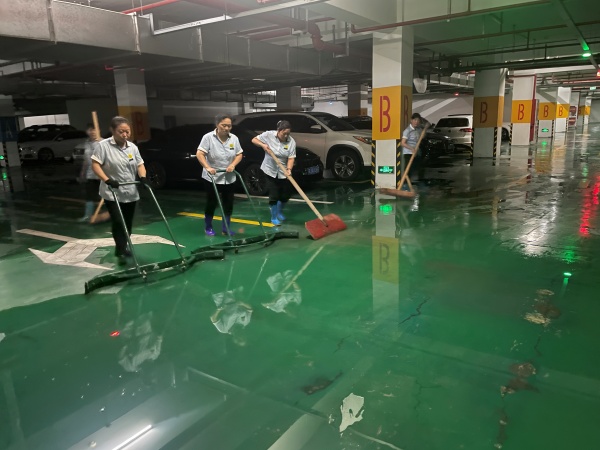 雨中巡檢、積水清理、排水口疏通……降雨來勢迅猛,集團資產(chǎn)部協(xié)同東方物業(yè)公司、東方新銳公司組織200余名精干力量第一時間進行防汛工作,奔赴現(xiàn)場搶險,為業(yè)主開辟暴雨“綠色通道”。