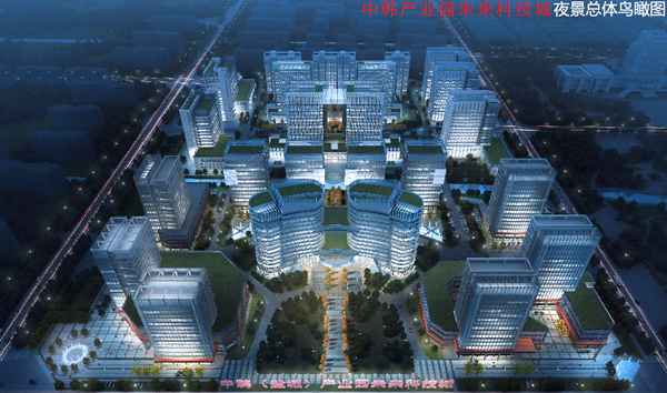 中韓(鹽城)產(chǎn)業(yè)園未來科技城夜景鳥瞰