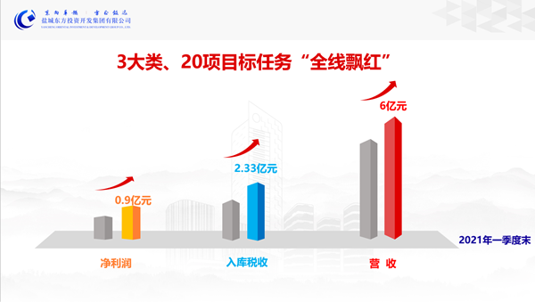 實(shí)現(xiàn)營(yíng)收6億元,同比增長(zhǎng)42.9%;完成凈利潤(rùn)0.9億元,同比接近翻番;入庫稅收2.33億元,完成全年目標(biāo)的66.6%……翻開鹽城東方集團(tuán)一季度報(bào)表,列入市、區(qū)考核的3大類、20項(xiàng)目標(biāo)任務(wù)“全線飄紅”,令人振奮。